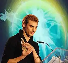 ![]() Yuzna receiving the Teddy Jury Prize in 2010 | |