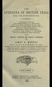 - Murray, J.A. (1888) Indian Birds or the Avifauna of British India. Vols. 1-2. London: Trubner & Co.