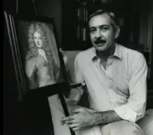 ![]() Williams in the library of Mercer House in July 1980, pictured with a pastel, by Henrietta Johnston, of John Perceval, 1st Earl of Egmont | |
