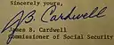 James Bruce Cardwell (1922 – December 4, 2012) was a bureaucrat in the federal government of the United States. Born in Washington, D.C. in 1922 and a graduate of the city's Western High School,[1] Cardwell began his federal service in 1942 as a clerk in the Public Housing Administration. After serving with the U.S. Army in Europe during World War II, he returned to the Public Housing Administration in 1945, where he worked on administrative and budget assignments until 1954. In 1955, Cardwell received a bachelor's degree from Columbus University. In the same year, he joined the Department of Health, Education, and Welfare, serving in various budget positions through 1973 when he resigned as DHEW's Assistant Secretary and Comptroller to become the Commissioner of the Social Security Administration, a post he held until the end of 1977.[2] He then spent a short time as an executive for the Corporation for Public Broadcasting before taking a position with the Blue Cross Blue Shield Association, and he concluded his career with five years' service at the Nasco health insurance firm.[1]