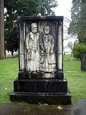 James’ father Emmor died in 1846 and was buried on the family land in East Portland.[7] When Stephens sold the land to Colburn Barrell in 1854, he required Barrell to maintain the grave site. On April 8, 1854, Barrell’s ship Gazelle exploded and killed his partner and several others, all buried next to Emmor Stephens.[7] Barrell then created Mt. Crawford Cemetery on 10 acres (40,000 m2), which became Lone Fir Cemetery after 1866 when 20 acres (81,000 m2) more had been added to the grounds of the cemetery.[7] Stephens and his wife Elizabeth are buried at the cemetery.[4]