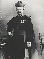 Born in London, England on 26 February 1846, he served as a military chaplain.[1] He was appointed the Vicar Apostolic of Gibraltar and Titular Bishop of Milevum by Pope Leo XIII on 16 February 1899.[2] His consecration to the Episcopate took place on 1 May 1899; the principal consecrator was the Right Reverend James Laird Patterson, Auxiliary Bishop of Westminster, with the Right Reverend Robert Brindle, Auxiliary Bishop of Westminster (later Bishop of Nottingham) and the Right Reverend Francis Bourne, Bishop of Southwark (later Cardinal-Archbishop of Westminster), serving as co-consecrators.[2]