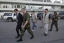 - ↑ Williams, Carol J. (March 1, 2005). "Doubts Linger on Aristide's Exit". The Los Angeles Times. ISSN 0458-3035. Retrieved 2016-07-18.