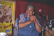 Cotton played drums early in his career but is famous for his harmonica playing. He began his professional career playing the blues harp in Howlin' Wolf's band in the early 1950s.[3] He made his first recordings as a solo artist for Sun Records in Memphis in 1953.[3] In 1954, he recorded an electric blues single "Cotton Crop Blues", which featured a heavily distorted power chord–driven electric guitar solo by Pat Hare.[6] Cotton began working with the Muddy Waters Band around 1955.[3] He performed songs such as "Got My Mojo Working" and "She's Nineteen Years Old", although he did not play on the original recordings; Little Walter, Waters's long-time harmonica player, played for most of Waters's recording sessions in the 1950s. Cotton's first recording session with Waters took place in June 1957, and he alternated with Little Walter on Waters's recording sessions until the end of the decade.