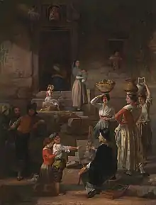 When French troops bombarded Rome in June 1849 in order to restore the pope's temporal authority over the city, most foreigners fled the violence and turmoil, but Freeman remained. His firsthand chronicle of the siege was published in the New York Evening Post that August. Within days after the French breached the city walls and on July 3, 1849 they occupied Rome, Consul Brown - who had come into conflict with the French for hiding wanted Italian patriots in his home - claimed to be ill and hastily departed his post, appointing Freeman acting Roman consul in his absence. Freeman embraced the opportunity to assist those who had fomented and abetted the revolution. He personally erected the American flag on Margaret Fuller's balcony on Locanda Dies in via Gregoriana, fearing that her pro-Italian, anti-French dispatches to the New York Tribune could have placed her in danger. He hid the apostate Italian priest Alessandro Gavazzi in his home for three nights and helped him escape to England.[2] Most significantly, Freeman contrived a sort of improvised passport for thousands of Italians who faced certain death if captured by the French or Austrians, ensuring their safe passage out of Italy and, ostensibly, to America. All of this he apparently did out of personal conviction and with the expectation that his diplomatic post would immunize him from prosecution; however, his consulship to Ancona was suddenly revoked and given to the sculptor Joseph Mozier and a new consul replaced Brown at Rome. Fortunately, the American Chargé d'Affaires Lewis Cass Jr. attached Freeman to his legation, thereby guaranteeing he could stay on at Rome as an artist after the pope was reinstalled.