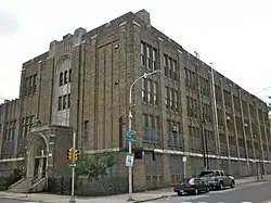 The school is housed in the former James Elverson Jr. School building, which is located in the Templetown neighborhood of Philadelphia, Pennsylvania. Designed by Irwin T. Catharine and built between 1929 and 1930, it is a three-story, eleven-bay bay, brick building that sits on a raised basement. It was designed in the Late Gothic Revival-style. An addition was built in 1954. It features a projecting central entrance pavilion, brick piers, and a castellated parapet.[4] It was named for James Elverson, publisher of The Philadelphia Inquirer.