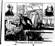 The trial at the Central Criminal Court before Chief Judge Sir Nicolas Conyngham Tindal, PC (1776-1846) commencing on Monday 3 April 1837, was prosecuted by John Adolphus (1768-1845), and Sir William Henry Bodkin (1791-1874). The prosecution case was that the marriage offer had always been a sham, that Greenacre had no property or money of his own, that he never had any intention of marrying Hannah Brown, and that the whole affair was a murder scheme premeditated for the specific purpose of obtaining Hannah Brown's money and property, and that after murdering Brown Greenacre intended to escape to America with his accomplice Sarah Gale.[2][3]