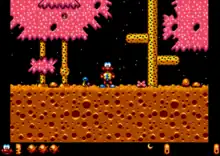 The gameplay in Operation Starfish is similar to Super Mario World. The map of the Moon consists of many levels connected with pathways. The levels are grouped into themed sections including cheese, custard, ice cream and more, with each section culminating in a boss fight. Many stage names are a play on words, such as "The Garden of Edam" for the first level (named after the Garden of Eden). A unique twist to the standard "Super Mario"-style gameplay is that Pond's magno-boots allow him to run up walls. Once on a ceiling, James Pond will only fall down if he jumps off, and some levels have sections which the player must navigate in this upside-down fashion. Although James Pond can no longer stretch his body upwards as he could in the preceding game, many levels give the player gadgets that allow James Pond to travel a great distance upwards.
