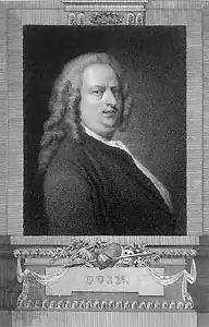 Soon after his father's death in 1710, he made his first appearance on the stage at Abel in Sir Robert Howard's The Committee at the Smock Alley Theatre.[3] Quin's first London engagement was in small parts at Drury Lane, and he secured his first triumph at Bajazet in Nicholas Rowe's Tamerlane, on 8 November 1715. The next year he appeared as Hotspur at Lincoln's Inn, where he remained for fourteen years.[3]