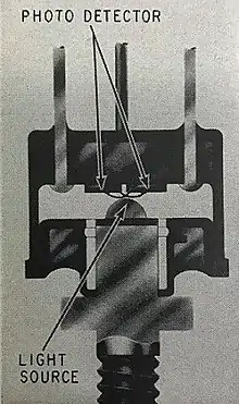 https://www.youtube.com/watch?v=lEIe7tkjVqQ - ↑ US Patent 3304431, Biard, James R., "Photosensitive Transistor Chopper Using Light Emissive Diode", Filed: November 29, 1963, Issued: February 14, 1967.