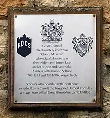 Tate was appointed headmaster of Richmond School on 27 September 1796, the fulfillment of a childhood ambition.[3] Tate was responsible for transforming Richmond School into one of the leading classical schools of its day, and the leading Whig school, attracting boys from throughout the country, at a rate of 100 guineas a year.[2][4][5]