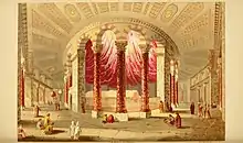 Barclay is known as an explorer of the Barclay Gate, an ancient gateway to the Jerusalem Temple which was sealed-off in his day,[5] and which has since been named after him.[6] The lintel of this gate is directly below the Maghrabi gate used by the tourists today to enter the Temple Mount from the west. Barclay discovered the Herodian-period gate while surveying the Temple precincts (Arabic: Ḥaram) in 1848. It is located slightly north of the ramp leading up to the Mugrabin Gate (Moors' Gate),[7] and only part of it is still visible.[8][9] After the original gate had been filled-in, the corridor into which it led had been made into a cistern.[8] Barclay, describing the Gate, wrote: "It is directly below what is now Mugrabin Gate, and most of it is currently hidden by the house of the town clerk Abu Seul Effendi. Twenty feet and two inches of the lintel are visible today, and six feet and nine inches is its width; that's probably only half the original width. This lintel is only about four feet above the current floor level..."[10] A complete description of Barclay's Gate is had in Sir Charles Warren's and Claude R. Conder's book Jerusalem, published by the Palestine Exploration Fund of London.[11] Other features of the Temple Mount enclosure (Ḥaram esh-Sharif) were also described by Barclay.[12]