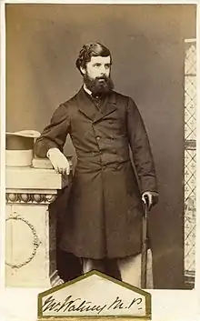 Watney contested the 1871 by-election in the East Surrey constituency as a Conservative, following the death of the Liberal MP and fellow brewer Charles Buxton. According to the Birmingham Daily Post, "he ... stood on the 'Beer and Bible' platform, and carried what had always been regarded as a safe Liberal seat by a swinging majority".[6] He sat as the second member of the two-seat constituency until it was abolished at the 1885 election, making 61 contributions in the House of Commons between 1872 and 1882, but none in 1875.[7]