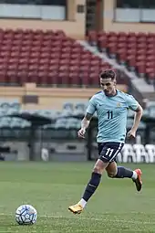 Jamie Maclaren (born 29 July 1993) is an Australian professional soccer player who Captains & plays as a striker for A-League club Melbourne City. He has also previously played for Darmstadt 98, Perth Glory, Brisbane Roar and Hibernian. Maclaren initially represented Scotland at youth level, but has since appeared for Australia at both youth and senior international level. He is a five time A-League Golden Boot winner as A-League top scorer in the 2016–17 (19 goals), 2019–20 (22 goals), 2020–21 (25 goals) and 2021–22 (15 goals) season, 2022–23 and 24 goals). He is now the A-League all-time leading goalscorer overtaking Besart Berisha with 151 and counting.