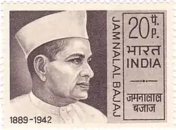 Jamnalal Kaniram Bajaj (4 November 1889 – 11 February 1942) was an Indian industrialist.[1] He founded the Bajaj Group of companies in the 1920s, and the group now has 24 companies, including six that are listed on the bourses.[2] He was also a close and beloved associate of Mahatma Gandhi, who is known to have often declared that Jamnalal was his fifth son.[3]