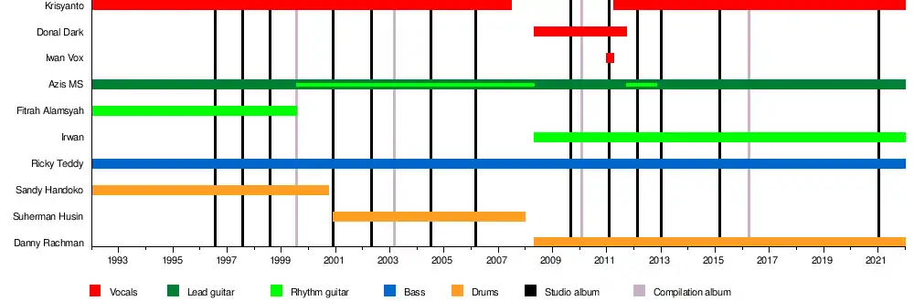 | Past members | Ari Yudi Budhy Haryono Robby Fitrah Alamsyah Agus Aziz Oppi Untung Sandy Handoko Suherman Husin Iwan Vox Jaja Amdonal |