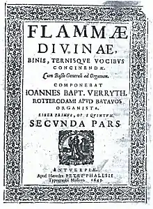 2. Frits Noske Sweelinck 1988 "The most outstanding composer during the first half of the century was Jan Baptist Verrijt (d. 1650), whose recently discovered Flammae divinae (motets and Masses for two and three parts) offer a splendid synthesis of traditional.."