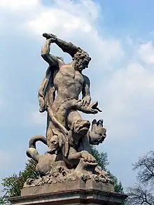 In 1750 Redler was employed again by Branicki to do sculptural decorations of the Branicki Palace, Białystok. These included sculptures for the garden, interior staircase, and two other monumental sculptures: "Hercules fighting the dragon," and "Hercules fighting the hydra", which in 1757 is set between the initial and honorary courtyard. Around 1758 he created the statue of St. John of Nepomuk, which was set at the church in Szczyty-Dzięciołowo.