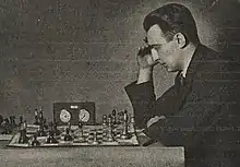 He played at first board for Czechoslovakia at 3rd unofficial Chess Olympiad in Munich in 1936 (+7 –1 =11), at second board at the 7th Chess Olympiad in Stockholm in 1937 (+7 –2 =9), and at second board at the 8th Chess Olympiad in Buenos Aires in 1939 (+8 –3 =5). Altogether in these three events, in 53 games, he scored (+22 -6 =25), for 65.1 per cent.[3]