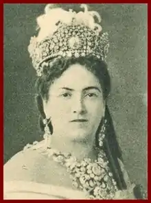 She gave birth to six children, the eldest of whom was Isma'il's first born son, and heir. However, four of them, including the first born, died in childhood.[7][8] Of the surviving, a daughter, Princess Zainab Hanim (died 1875) was born in 1859, followed by a son, Ibrahim Hilmi Pasha (died 1927), born in 1860.[9][10][11] She had also adopted a Circassian girl named Fatma Kopses Hanim (1859 – 1888).[12] After Isma'il's accession to the throne in 1863, she was given the title of "Second Princess",[5] a position at which she remained throughout his entire reign, until his deposition in 1879.[9] In Egypt she was known as Ortangi Hanim or Middle Lady.[7] She was Isma'il's favourite wife.[13]