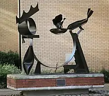Ackroyd's public commissions often feature birds and animals, for example Cat at the Old Library in Harlow.[5][3] Other public commissions include Well at the Museum of Harlow, at the site of the former Royal Free Hospital in Islington and at the Haymarket in London.[3][6] The Arts Council England, the Contemporary Arts Society, the Leicestershire Education Authority and the Goodwood Sculpture Park hold works by Ackroyd.[3][6]