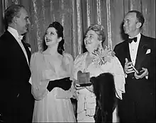 Alfred Lunt and Lynn Fontanne congratulate Darwell and Walter Brennan on their Academy Awards for Best Supporting Actress and Actor, February 28, 1941.