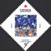 - ↑ Thacyk, Lorri (June 25, 1992). "Calgary artist drawing rave reviews for stamp". Calgary Herald.