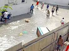In 1987, a massive storm surge hit and flooded a large part of the Maldives. The devastating surge wielded a strong influence on this island country in the Indian Ocean, particularly the infrastructure in Malé was paralyzed and damaged at an estimated cost of U.S.$6 million.[6] GDP of the Maldives, afterwards, decreased 5.70% in this year compared to the previous one, or from U.S.$158 million in 1986 to U.S.$149 million in 1987.[7] Malé instantly requested Tokyo for the emergency assistance and an aid in preventing disaster like the storm surge, and Japanese government accepted it. A coastal protection project supported by Japan' ODA soon began within the year, and it continued until 2002 when completed the six kilometers long barrier all the way around the capital.[6]