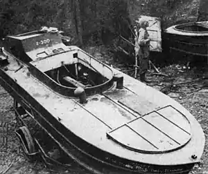 The Shin'yō (震洋, "Sea Quake") were Japanese suicide boats developed during World War II. They were part of the wider Special Attack Units program. These fast motorboats were piloted by one man, to speeds of around 30 kn (56 km/h; 35 mph). The Maru-Ni was an Army version with two depth charges the operator would drop and try to escape before detonation.