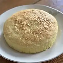 Japanese cheesecake (Japanese: スフレチーズケーキ),[1] also known as soufflé-style cheesecake, cotton cheesecake,[2] or light cheesecake, is a variety of cheesecake that is usually lighter in texture and less sweet than North American-style cheesecakes. It has a characteristically wobbly and airy texture, similar to a soufflé when fresh out of the oven and a chiffon cake-like texture when chilled.