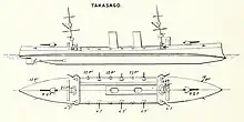 Takasago (高砂, literally, High Sand, antiquated Japanese name for Formosa) was a protected cruiser of the Imperial Japanese Navy, designed and built by the Armstrong Whitworth shipyards in Elswick, in the United Kingdom. The name Takasago derives from a location in Hyōgo Prefecture, near Kobe.