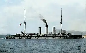 Yakumo (八雲, Eight Clouds) was an armored cruiser (Sōkō jun'yōkan) built for the Imperial Japanese Navy (IJN) in the late 1890s. As Japan lacked the industrial capacity to build such warships herself, the ship was built in Germany. She participated in most of the naval battles of the Russo-Japanese War of 1904–05, and was lightly damaged during the Battle of the Yellow Sea and the Battle of Tsushima. Yakumo saw no combat during World War I and began the first of many training cruises in 1917, although she was not officially reclassified as a training ship until 1931. Her last training cruise was in 1939, but the ship continued to conduct training in home waters throughout the Pacific War. Yakumo became a repatriation transport after the war and was broken up in 1946–47.
