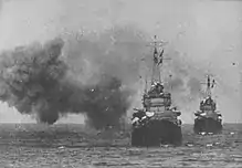 The Shiratsuyu-class destroyers were modified versions of the Hatsuharu class, and were designed to accompany the Japanese main striking force and to conduct both day and night torpedo attacks against the United States Navy as it advanced across the Pacific Ocean, according to Japanese naval strategic projections.[3] Despite being one of the most powerful classes of destroyers in the world at the time of their completion, none survived the Pacific War.[4]