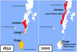 ![]() Distribution of the Ongan languages prior to 1850 (Fig. 1) and in 2005 (Fig. 2) | |