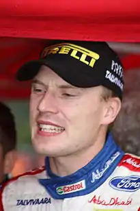 Jari-Matti Latvala (Finnish pronunciation: [ˈjɑriˌmɑtːi ˈlɑt.ʋɑ.lɑ]; born 3 April 1985) is a Finnish rally driver who has competed in the World Rally Championship (WRC). His co-driver for most of his career was Miikka Anttila, who co-drove for Latvala between the 2003 Rallye Deutschland and 2019 Rally Catalunya. He is well known for his aggressive driving style, which earns him many plaudits, and comparisons to the late Colin McRae. With 18 event victories in the WRC, he is one of the most successful drivers to not have won a championship. Latvala is also the driver with the most World Rally starts in the sport which he achieved in 2019, 17 years after his debut.