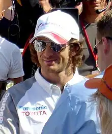 He qualified on the front row alongside pole-sitter Felipe Massa for the season-ending Brazilian Grand Prix, which was to decide the 2008 world championship between Massa and Lewis Hamilton.[40] During the race, Trulli had several close shaves in the changeable weather conditions, and eventually finished 8th. His teammate Glock played a pivotal part in the title outcome as he was passed by Hamilton on the last corner of the race, which gave the Englishman the championship by one point from Massa, who won easily.[41] Trulli finished the 8th in Drivers' Championship standings, collecting 31 points, 4 more than his teammate.[42]
