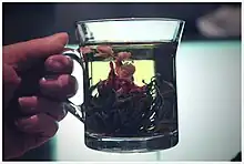 Jasmine tea (Chinese: 茉莉花茶; pinyin: mòlìhuā chá or Chinese: 香片; pinyin: xiāng piàn) is tea scented with the aroma of jasmine blossoms. Typically, jasmine tea has green tea as the tea base; however, white tea and black tea are also used. The resulting flavour of jasmine tea is subtly sweet and highly fragrant. It is the most famous scented tea in China.[1]