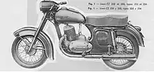 Jawa 250 Type 353 was a standard motorcycle designed and manufactured by Jawa Motorcycles in Czechoslovakia starting from 1954 till 1962. This motorcycle succeeded Jawa Perak 250 in the year 1954 and later Jawa 250 Type 559 succeeded Jawa 250 Type 353 in the year 1962. The motorcycle was also manufactured in India by Ideal Jawa under license of Jawa Motorcycles from 1962 to 1973. Initially Ideal Jawa imported these motorcycles as CKD units and assembled in Mysore and sold them as the construction of the factory was not complete. Some variants of the same motorcycle were manufactured in Turkey and China. These motorcycles were famous for their symmetrical design language, ease of maintenance and reliability. This was the first Jawa motorcycle to have rear suspension springs, hence these were also called as "Kývačka 250" which translates to Spring 250 in English. There were basically four variants of Jawa Type 353.