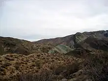 - Blue Point, a large hill covered with blue-green stone, marks the entrance to Alphie Canyon. The color is due to oxidized copper in the rock.[6][7]