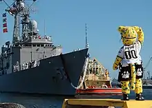 Jaxson de Ville salutes sailors aboard USS Samuel B. Roberts, September 2007.