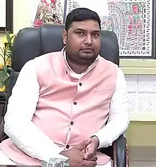 Jayant Raj Kushwaha[1] is an Indian politician, Member of Legislative Assembly from the Amarpur (Vidhan Sabha constituency) of Bihar, and Minister of Rural Work in the Government of Bihar. In the 2020 election, he defeated Jitendra Singh of the Indian National Congress. While Raj secured 33.13% of votes polled, Singh, the runner up, finished with 31.23% of the votes.[2] Raj is a member of Janata Dal (United), the ruling party of Bihar.[3]