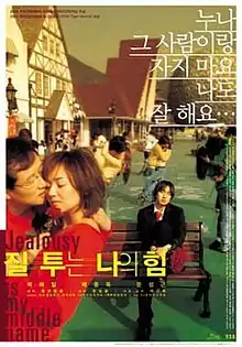 Jealousy Is My Middle Name (Korean: 질투는 나의 힘; RR: Jiltuneun naui him; lit. “Jealousy is My Strength”) is a 2003 South Korean film. It won Best Film honors at the Busan International Film Festival and the Rotterdam Film Festival and was the directorial debut of Park Chan-ok.[1][2] It was inspired by the poem of the same name by Ki Hyung-do.