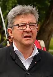 In the first round of voting in France's two round voting system, he came in third place with 22% of the vote, behind president Emmanuel Macron in first place with 28%, and narrowly behind Marine Le Pen's 23% of the vote.[42] Only the top two finishers continue on to the second round, so Mélenchon was eliminated after the results of the first round were certified. Mélenchon advised his voters not to vote for Le Pen in the second round, but did not endorse Macron. His 7.7 million first-round voters became a key demographic for the second round. He was the most popular candidate for voters aged 24–35.[43] He was the most voted candidate in the overseas departments of Martinique, Guadeloupe, French Guiana, Réunion, Saint Pierre and Miquelon and Saint Martin, obtaining majorities in several of these jurisdictions.[44] He was also the most voted candidate in Île-de-France.[45]