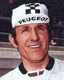 Jean-Pierre Danguillaume (born 25 May 1946) is a retired French professional road bicycle racer. He is the nephew of fellow racing cyclist Camille Danguillaume.[1] His sporting career began with U.C. Joue.[2] As an amateur, he competed in the team time trial at the 1968 Summer Olympics[3] and won the 1969 edition of the Peace Race. In 1970 he turned professional with the Peugeot team, where he spent his entire professional career. Between 1970 and 1978, Danguillaume won 7 stages in the Tour de France. His other notable wins included the Grand Prix de Plouay in 1971, the Critérium International in 1973, the Grand Prix du Midi Libre in 1974 and Paris–Bourges in 1975. In the latter year he also took the bronze medal in the road race at the World Championships in Yvoir, Belgium. During his career he took a total of 350 wins, including 68 as a professional. After his retirement at the end of 1978, he became a directeur sportif, managing the Mercier team from 1979 to 1984. After the team was disbanded, he joined Coca-Cola Enterprises as an executive, managing the company's presence at the Tour de France as a sponsor: he remained in this role for 19 years, retiring at the end of 2003. He continued to work at the Tour in a hospitality role.[1]