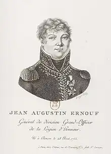 Jean Augustin Ernouf (Manuel Louis Jean Augustin or Auguste Ernouf) (29 August 1753 – 12 September 1827) was a French general and colonial administrator of the Revolutionary and Napoleonic wars. He demonstrated moderate abilities as a combat commander; his real strength lay in his organizational and logistical talents. He held several posts as chief-of-staff and in military administration.