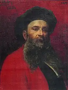Amy was close to members of the Félibrige, and portrayed them many times. Examples are Mistral (marble medallion, Salon of 1872), Les trois Félibriges: Mistral, Roumanille and Aubanel (marble bas relief, Salon of 1875 and Musée Calvet in Avignon).[3] His bronzed plaster bust of the famous Provençal poet Nicolas Saboly (1614–1675) was exhibited in the Salon of 1876 under the incorrect name Jacoby and donated by Amy to the Musée Calvet in 1877. Since no pictures of Saboly were extant it was entirely a work of the imagination.[5] Amy was a co-founder of La Cigale in 1876.[3] In 1877 the Soucieta Felibrenco dé Paris was founded by Batisto Bonnet, Jean Barnabé Amy, Joseph Banquier, Duc-Quercy, Maurice Faure, Louis Gleize and Pierre Grivolas. The society created the journal Lou Viro-Souléu.[6]