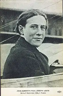 Lieutenant Jean Augustin Paul Joseph Loste was a French World War I flying ace credited with seven aerial victories.[1] He remained in service after World War I ended, finally retiring in 1930 at the rank of Chef de Bataillon.[2]