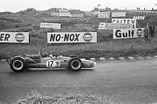 In 1966, Beltoise drove in the German Grand Prix at the Nürburgring in a Formula Two (F2) one litre Matra MS5-Cosworth. He finished one lap down but won the F2 class.[4] However, it was his only Grand Prix that season.[4] In 1967 Beltoise competed in three Grands Prix with a Formula Two Matra MS7 1.6 litre Cosworth, and finished seventh at both Watkins Glen and Mexico City.[4] He also won the 1967 Buenos Aires Grand Prix, which was not part of the World Championship calendar. In 1968 Beltoise began the season again with an F2 car but from the second race onward had Formula One machinery and finished second in the 1968 Dutch Grand Prix. In 1969 he was placed in Ken Tyrrell's Matra team, whilst the works V12 engine was developed[3] driving alongside Jackie Stewart, and finished second in the French grand Prix. Beltoise returned to the works Matra team for both 1970 and 1971. In 1971, racing in the Matra sports car team, he was involved in the accident in which Ignazio Giunti died during the 1000 km Buenos Aires, and his international racing license was suspended for some time.