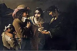 He most likely received most of his training in the family workshop. Later, he travelled to Rome where, in 1634, he is listed in the register of the Basilica of Santa Maria del Popolo. It is also known that he made a copy of "The Transfiguration" by Raphael.[1] It is unknown which living Italian painters he may have been in contact with although, judging from his use of lighting effects, he was probably influenced by the recently deceased Caravaggio.