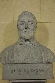 Jean de Carro (born in Geneva, August 8, 1770; died at Carlsbad, March 12, 1857) was a Swiss-born physician who worked from Austria to promote vaccination against smallpox.